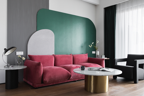 不同油漆色彩的碰撞拼接,会自然产生一或多个线条。这也是最简单,成本最低的增加空间线条感的方式。