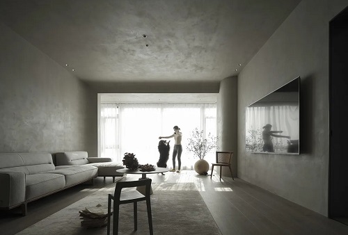 微水泥附着力好、耐磨耐用、抗压能力是普通水泥的1.7倍,质感好,纹理美观;是现在很流行的装修材料,也时常用在极简风的设计里。真的很简约,但是也真的很贵,地面1㎡的价格600元+。
