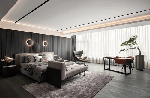 灯线在卧室的运用主要就是在吊顶。不管是氛围营造,还是示廓照明,或是装饰空间,效果都稳稳的。