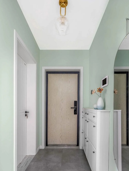 玄关区域可比室内低2-5cm左右,形成阻尘式玄关,提高室内整洁度。