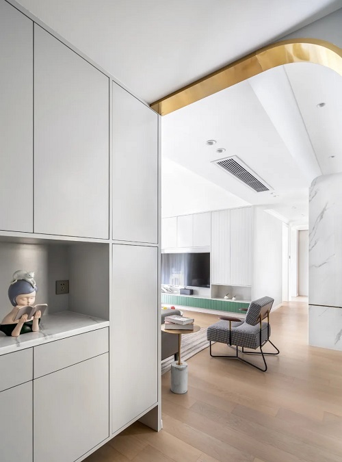 如果墙体是非承重墙,可以将柜体嵌入墙体内部,更加节省空间。