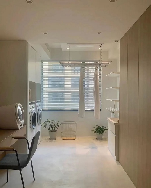 洗衣房除了洗衣服,也需要收纳很多杂物,如抹布、衣架、杂物等,所以规划合理的收纳柜也很重要。