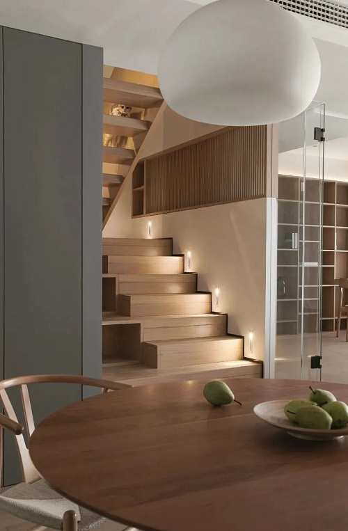 踢脚灯即是墙面靠近地面的地方安装灯具,夜里感应开关,起夜不用担心磕碰到,颜值也很高。
