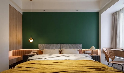深色配合灯光其实很容易出效果,但环境色会影响空间的采光感受,深色使得房间显得暗,如果本身空间采光一般的话,深色要慎用。当然只是说慎用,并不是说不能用,有时候反而这些颜色的效果会更好!