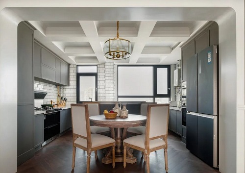 餐厅和厨房本来就应该是相互关联才对,饭烧完之后不就是吃了么。有一些户型厨房面积小,餐厅面积也小,如果能把两个空间相互打通的话,可以相互借用空间,厨房也大了,餐厅也大了,这就是餐厨一体的魅力。