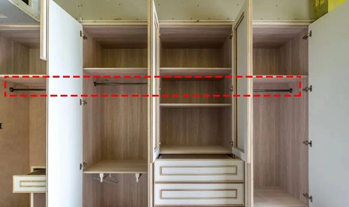 衣柜里面的挂衣区,需要用到挂衣杆。挂衣杆有银色有金属色有黑色,大家按需选择。此外,挂衣杆的安装也分两种,与柜子平行或与柜子垂直。